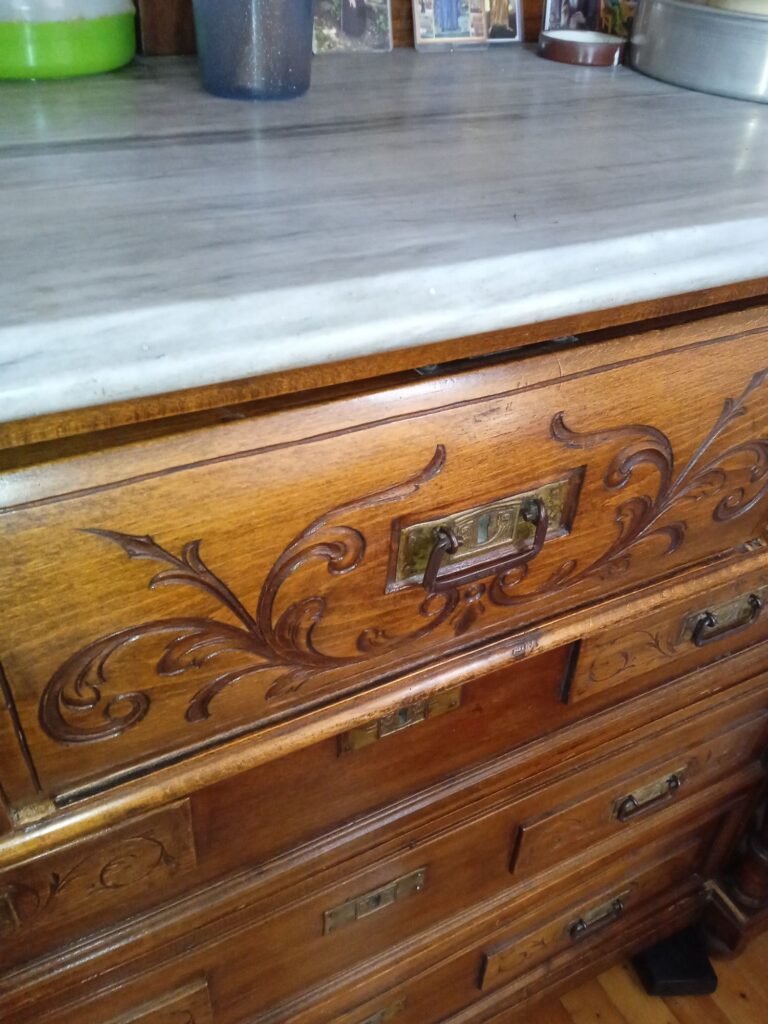 Κομο συρταριερα 6 συρταριων καρυδιά με μαρμαρο