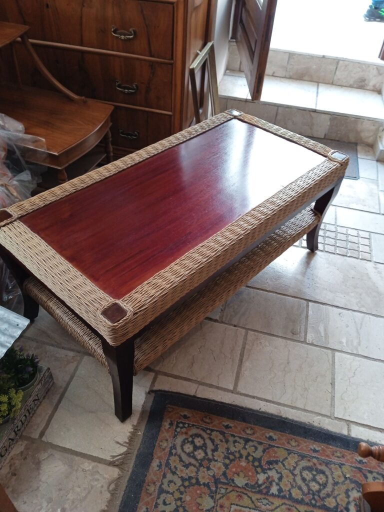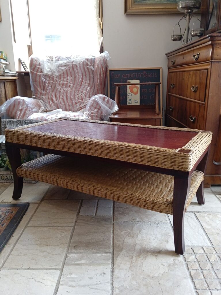 Τραπέζι σαλονιού με πλεκτό ψαθί διαστάσεις 115×60×50