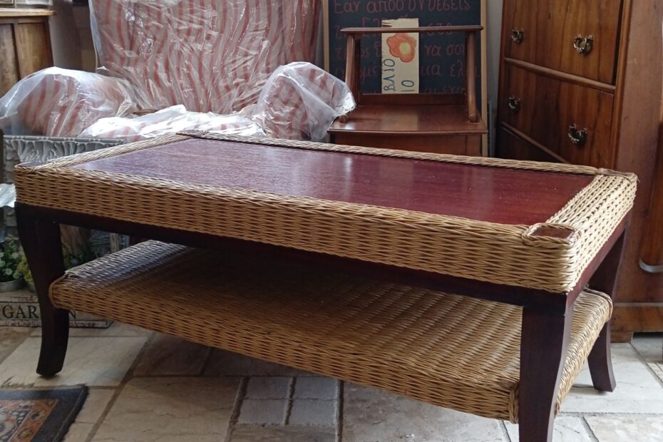 Τραπέζι σαλονιού με πλεκτό ψαθί διαστάσεις 115×60×50