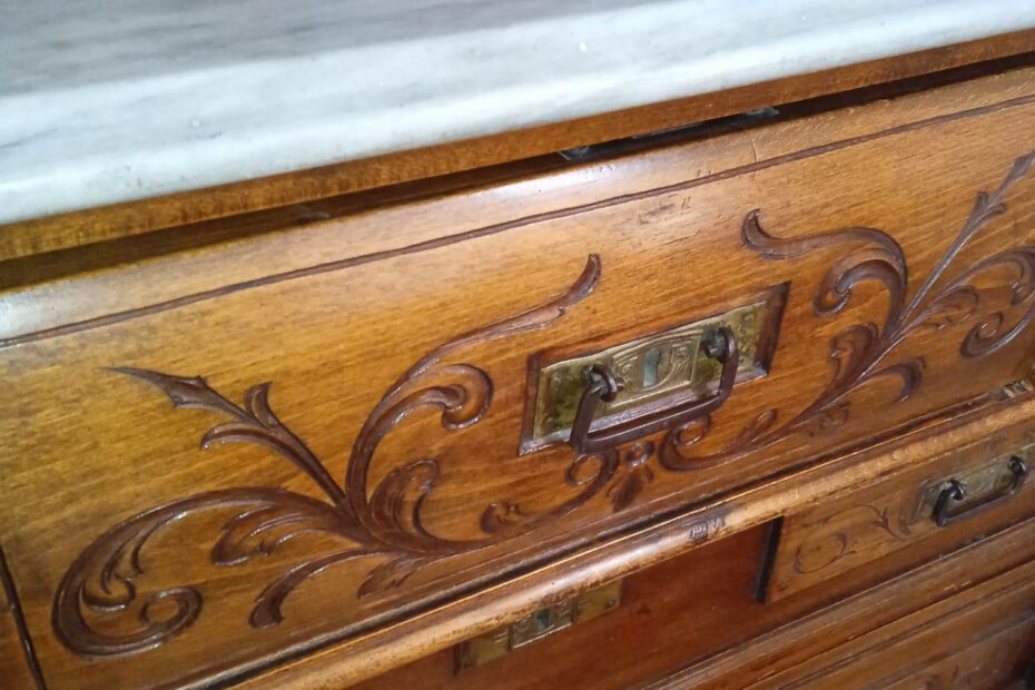Κομο συρταριερα 6 συρταριων καρυδιά με μαρμαρο