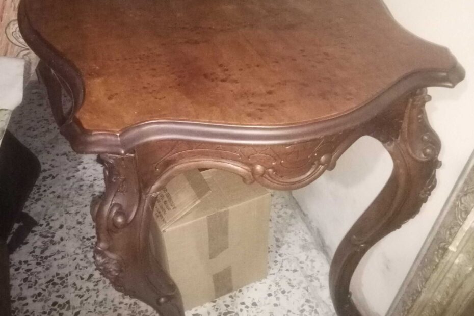 Τραπέζι σκαλιστό μέσης καρυδιά μασιφ με τριανταφυλλια καπακι95×65×77